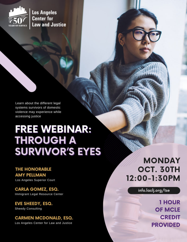 La violencia doméstica es un patrón de abuso, poder y control sobre una pareja que resulta en un trauma psicológico, lesiones físicas o incluso la muerte. Survivor Justice Center, que presta servicios a la comunidad durante 50 años, ayuda a los sobrevivientes a recuperar el control de sus vidas brindándoles representación legal gratuita y apoyo dentro y fuera de la sala del tribunal.